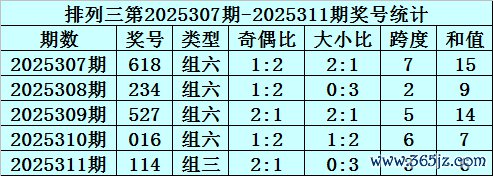 组选类型判断:最近5期陈设三开出4次组六号码,本期要点关心组六号码出现。