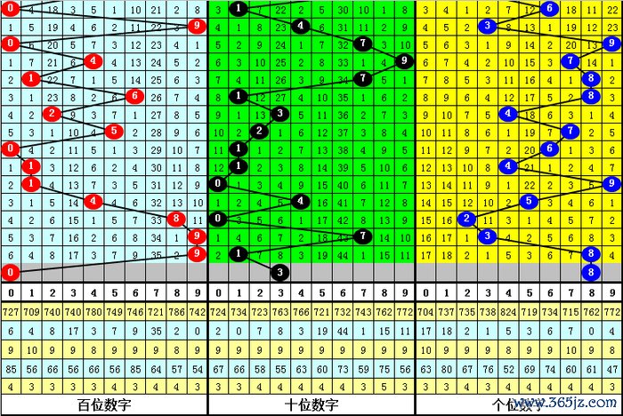 跨度分析:最近5期隔离开出跨度:9、1、8、6、8,本期防跨度8重叠开出。
